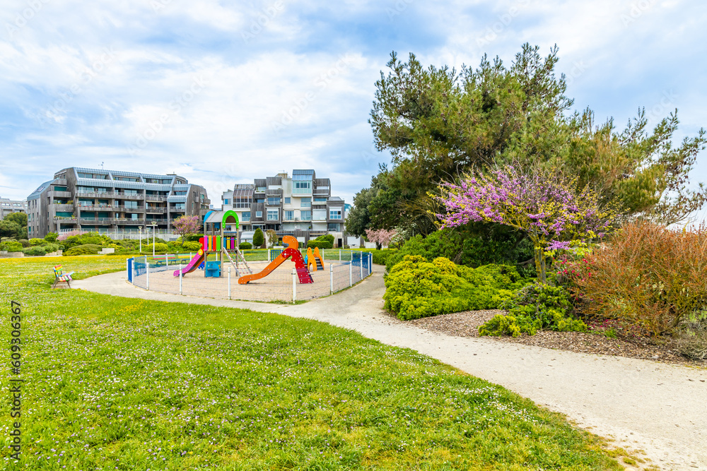 Playground and path of the Allee Stella Maris at the Pointe des Minimes in La Rochelle, France