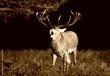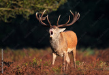 Red deer stag calling during the rut in autumn