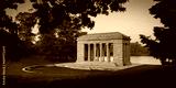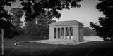 Serene sunset landscape at Temple to Music Pavilion and meadow forest park at Roger Williams Park in Providence, Rhode Island