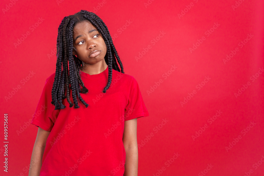 African woman with sad expression looking away