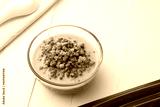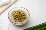 boiled green beans in coconut milk and sugar in glass bowl,Thai Dessert on wooden table