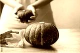 Green pumpkin with hand prepare for cooking