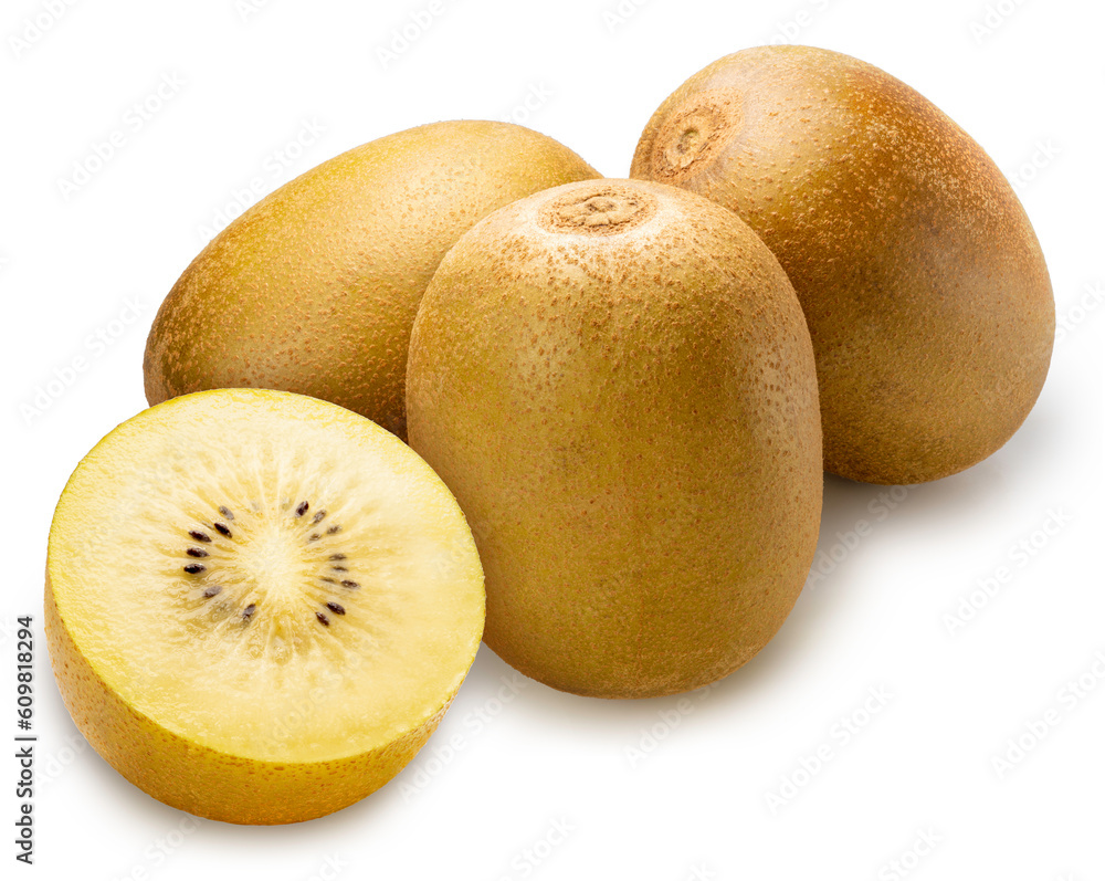 Golden Kiwi fruit isolated on white background, Fresh Kiwi fruit on White Background With clipping path.