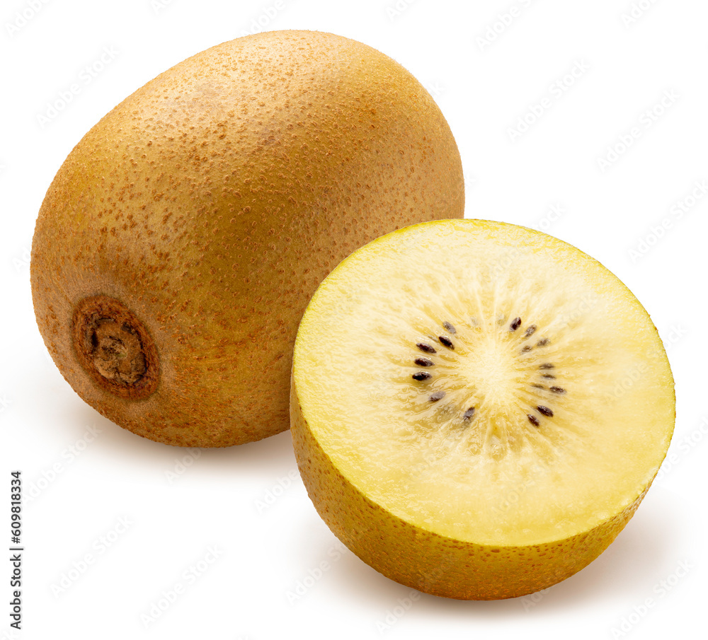 Golden Kiwi fruit isolated on white background, Fresh Kiwi fruit on White Background With clipping path.