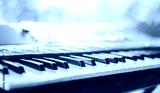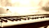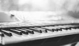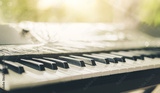 Piano keyboard background was set up in the music room by the windows in the morning to allow the pianist to rehearse before the classical piano performance in celebration of the great success.