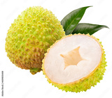 Chinese Green Lycheeon white background, Green Lychee or Chinese Cherry fruit isolated on white background PNG file.