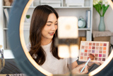 Beautiful women with social media influences are teaching makeup and use cosmetics, In front of the camera to recording vlog video live streaming, Online business on concept of beauty bloggers.