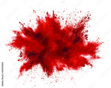 bright red holi paint color powder festival explosion burst isolated white background. industrial print concept background