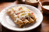 Tacos Dorados. Mexican dish also known as Flautas, consists of a rolled corn tortilla with some filling, commonly chicken or beef or vegetarian options such as potatoes.