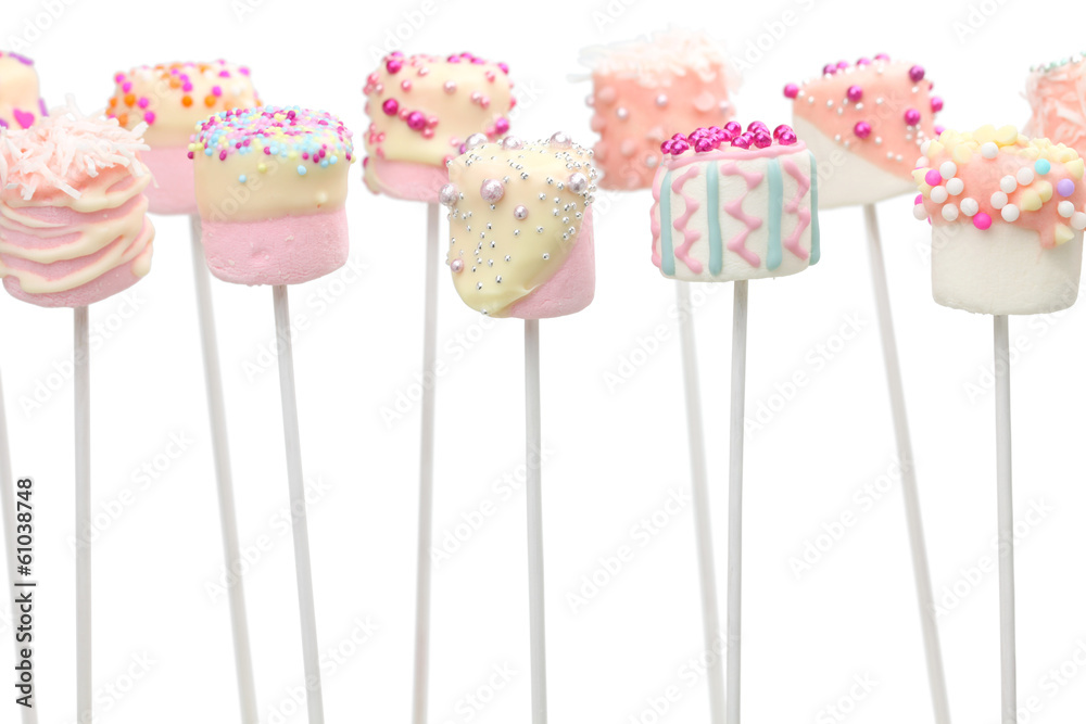 valentine marshmallow pops on white background