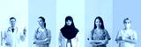 Set of doctors on colorful background