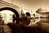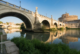Saint Angel Castle and bridge seen from Tiber river canal in Rome. Italy