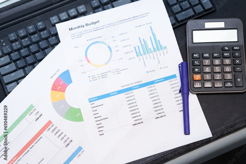 Budget planning concept. Business Planning Strategy Analysis discussing new plan financial graph data. Work with document graphs Concept.