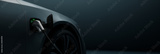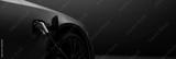 Generic electric EV hybrid vehicle is charging on a station inside a dark garage, renewable energy concept. Website header, app background image