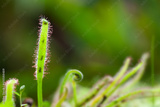 Drosera capensis Carnivorous plant. Macro view green plant, shallow depth of field, selective focus