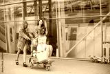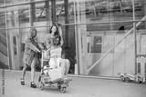 Three beautiful girls standing by the airport