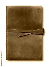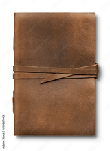 Old worn brown leather notebook isolated on white background
