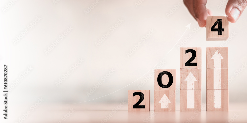 2024 change concept. Arrow sign and growth target.
