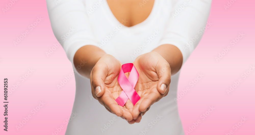 hands holding pink breast cancer awareness ribbon