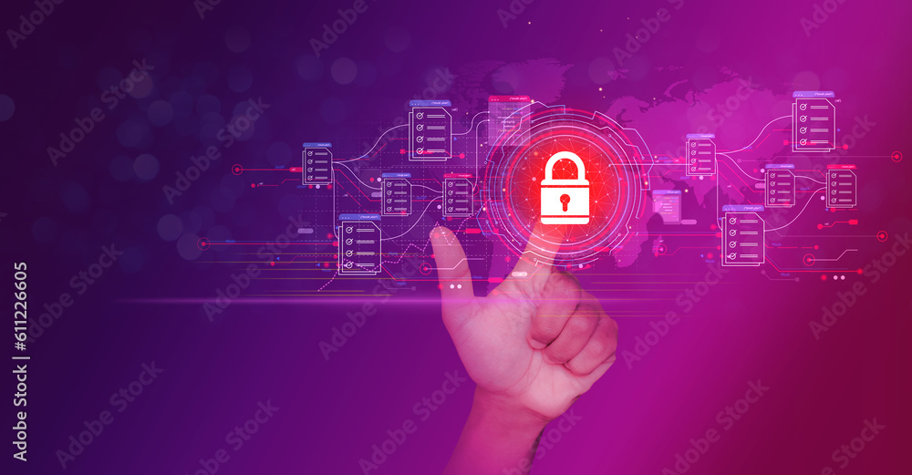 Businessman holding shield protect icon. Protection network security computer and safe your data concept, lock symbol, concept about security, cybersecurity and protection against dangers.