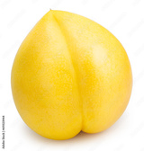 Shiny Yellow Peach fruit with leaf on white background, Fresh Peach on White Background with clipping path.