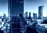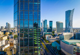 Aerial view of Warsaw skyscrappers in the business center of the city