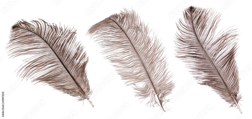 brown wide three ostrich feathers isolated on white