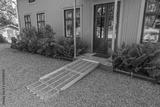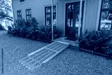 View of expanded metal wheelchair ramp infront of private house. Sweden.
