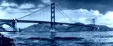 Panoramic view of the Golden Gate Bridge in San Francisco, California, USA. View of the ocean from the viewpoint of the Californian city's waterfront. Famous American bridge concept.
