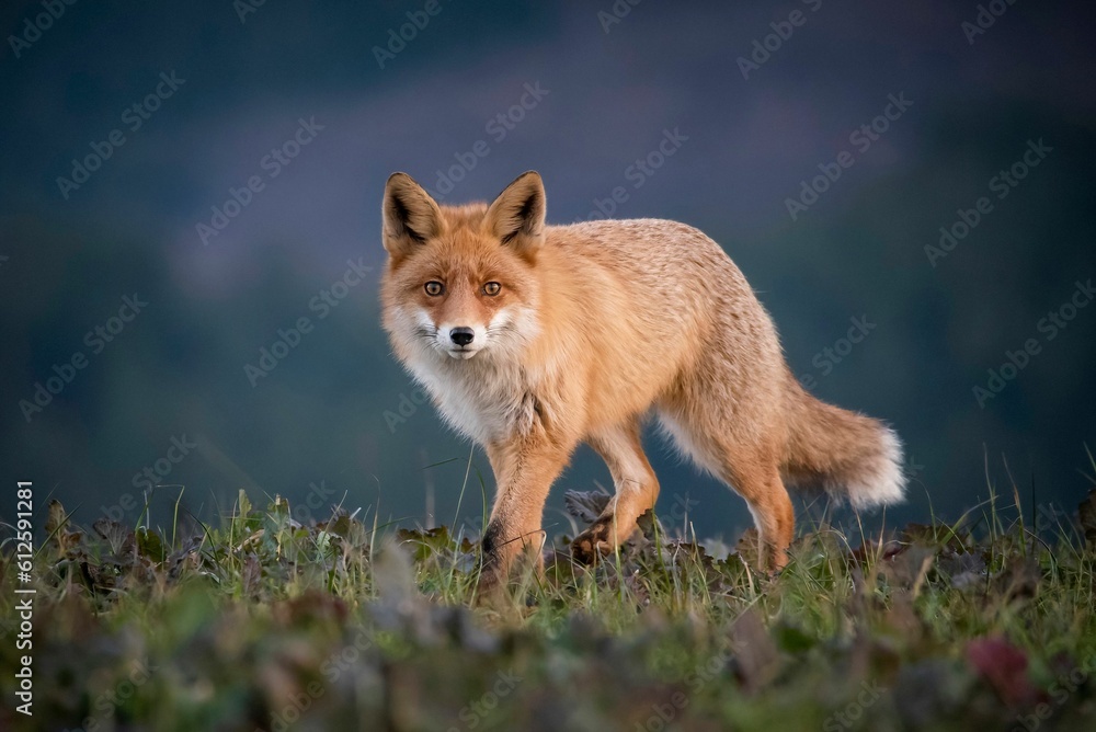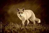 Selective focus on a wild Sakhalin fox found roaming around in the wild