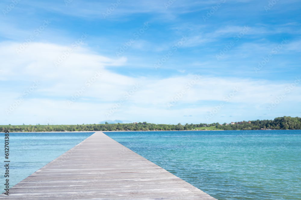 Blur Background. Beautiful tropical beach with blue sky and white clouds abstract texture background. Copy space of summer vacation and holiday business travel concept. Beach sea space area.