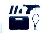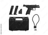 Modern semi-automatic pistol isolate on a white back. Armament for the army and police. Short-barreled weapon