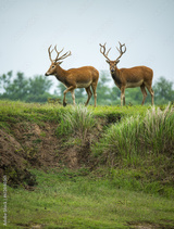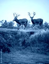 two elks standing on grassland