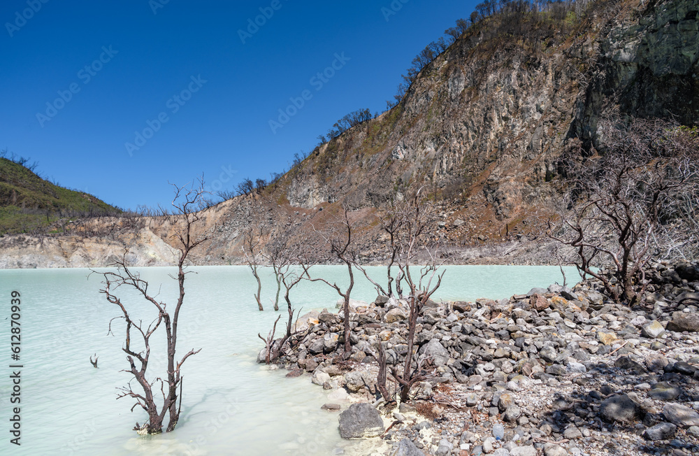 White Crater or Kawah Putih sulfur lake in West Java, Near Bandung city, Indonesia..