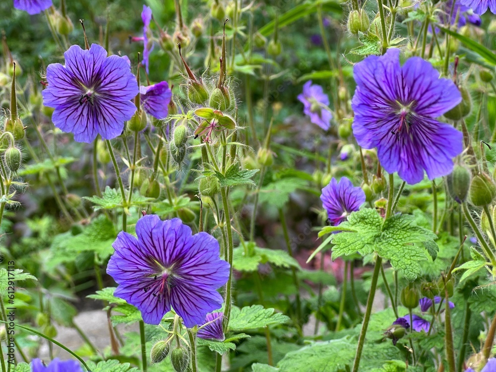 Geranium ibericum Caucasian crane's-bill, Iberian geranium herbaceous plant with violet colored flowers.