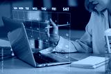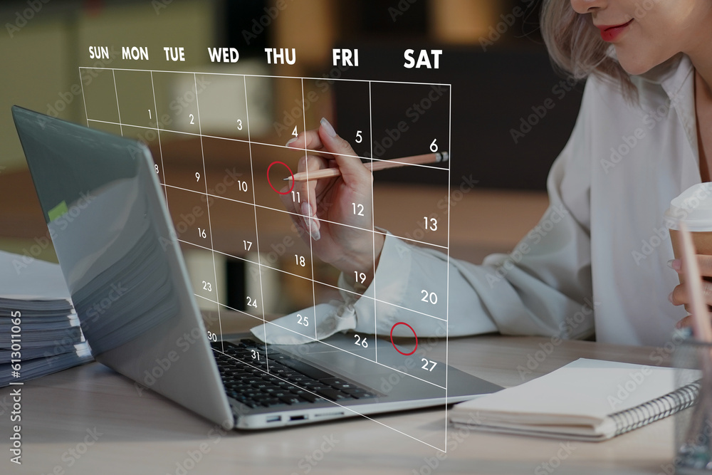 Highlight Reminder Appointment for the Calendar and the Organizer's Agenda Booking Meeting Appointment On Laptop Computer Online Reminder Schedule Event