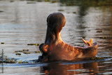 Hippopotamus, hippopotamus amphibius, Adult with Mouth wide open, Threat display, Khwai River, Moremi Reserve, Okavango Delta in Botswana