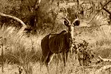 Greater Kudu, tragelaphus strepsiceros, Male standing in Bush, Moremi Reserve, Okavango Delta in Botswana