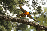 Blue and Yellow Macaw, ara ararauna, Adult in Flight