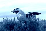 Grey Heron, ardea cinerea, Adult Taking off from Tree, Camargue in the South of France