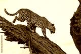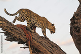 Leopard, panthera pardus, Adult standing in Tree, with a Kill, Moremi Reserve, Okavango Delta in Botswana