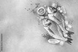 Fresh raw dorado fish with ingredients for cooking. Restaurant menu, dieting, cookbook recipe top view