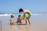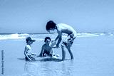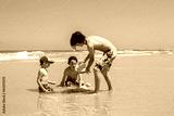 Child, boy, playing on the beach in Tel Aviv in the evening