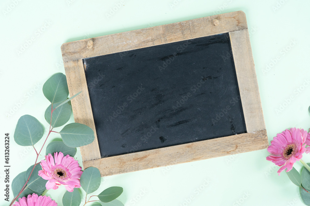 wedding or mothers day backgroundgreen eucaliptus leaves over mint green background with copy space