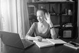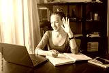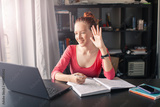 Teen girl Student doing homework on Laptop at home