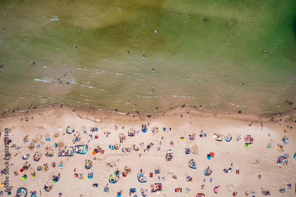 Aerial landscape of the summer beach in Leba at Baltic Sea, Poland.