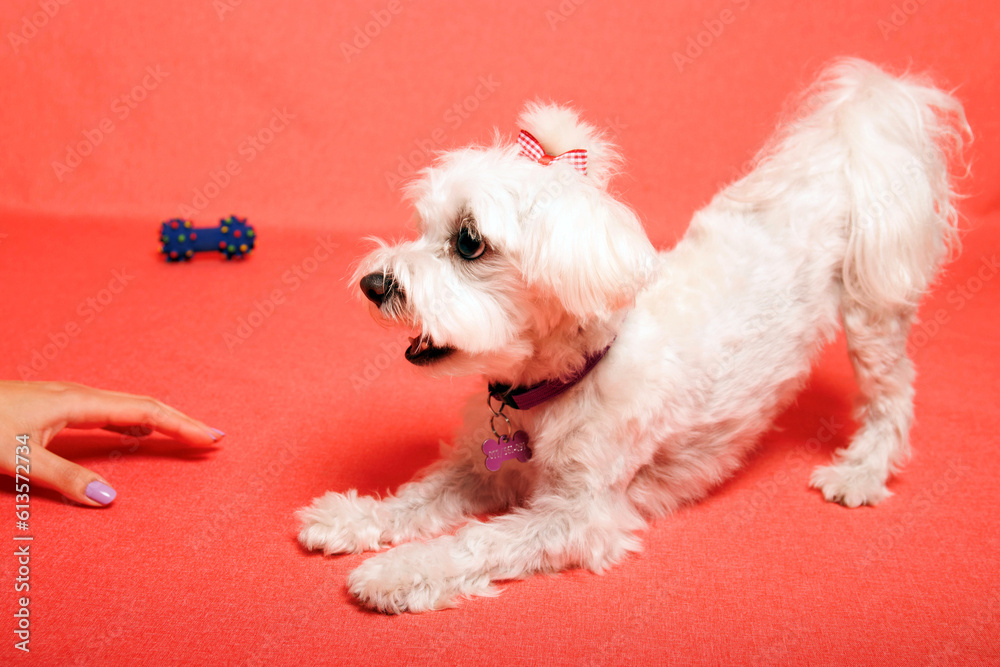 White Maltese dog photoshoot in studio