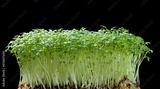 Growing watercress sprouts. Sprouting microgreens. The concept of healthy eating, vegan concept. Micro greens, organic food.