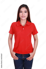 young beautiful female with blank polo shirt