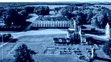 Aerial view of the ruins of the Royal Abbey of Chaalis and of the castle of Jean Aubert near Ermenonville in the French department of Oise in Picardy, North of France